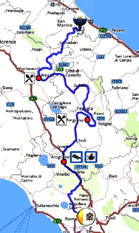 • departure from Hotel Umbria-Attigliano (Terni) at 08:31 (first Competitor) to Nepi (Viterbo), Rome via della Conciliazione.. Km 105.